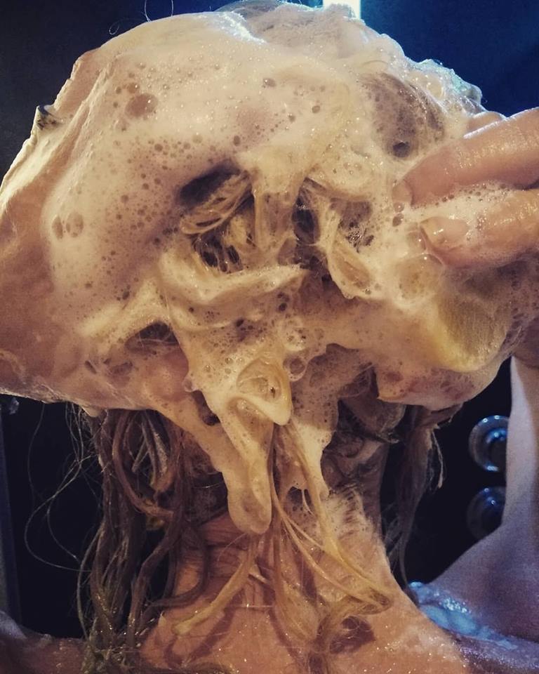 - Apply shampoo and work into a lather from roots to tips