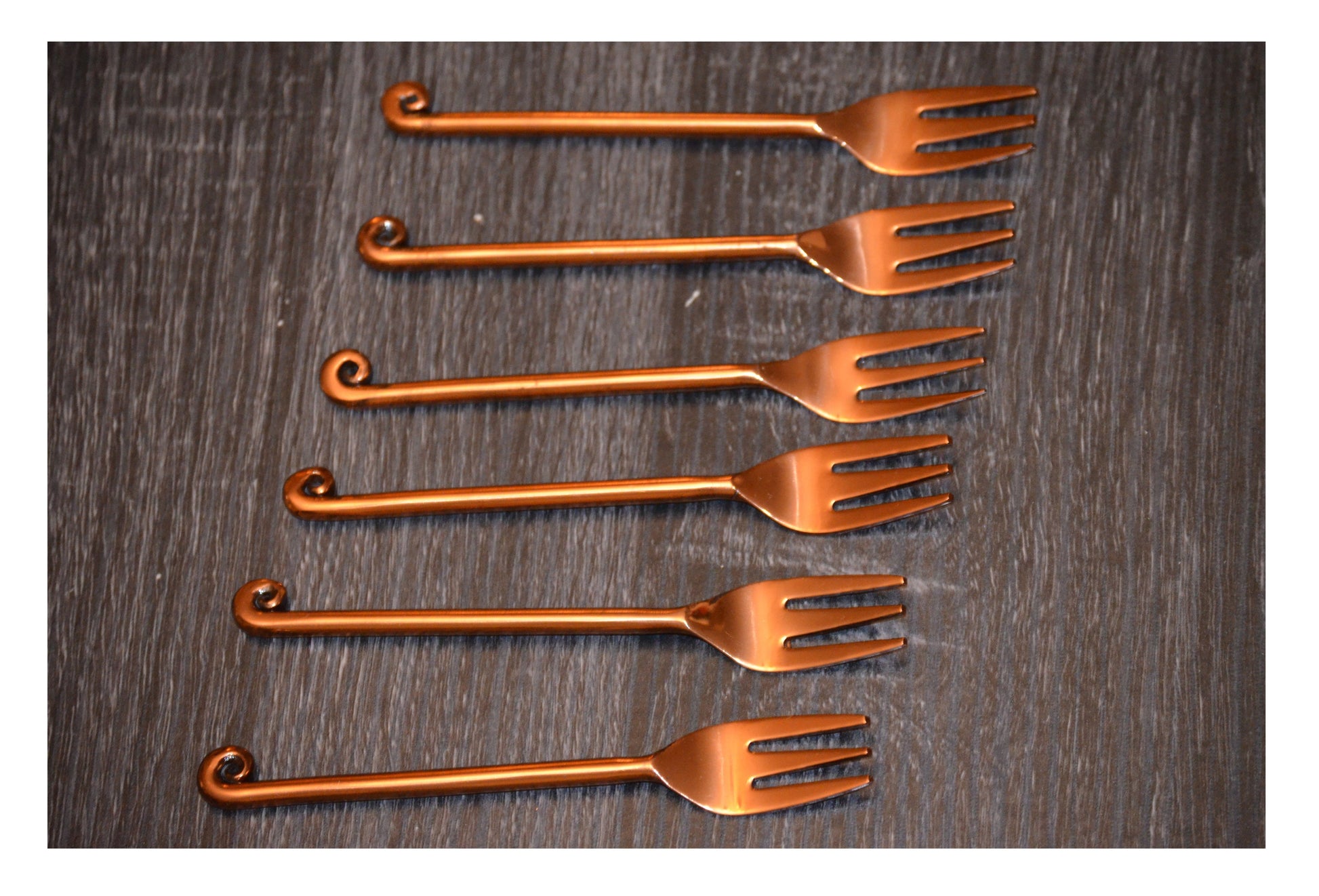 - Set of 6 small size Copper Coating Fork for kitchen and Dining Decor